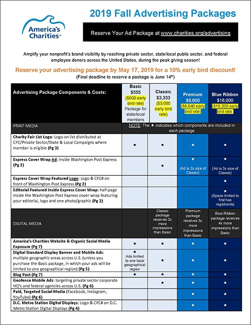Exclusively available to members of America’s Charities, our annual Member Advertising Campaign is an awareness campaign designed to amplify your organization’s brand visibility and reach a mix of potential workplace donors (military, Federal government, state/local public sector, and private sector employees) located across the United States during the peak giving season.