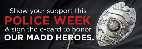 Their sacrifices often go unnoticed… but today, we’re saying ‘thank you’ to these brave heroes. Click here to show your gratitude by signing your name on a special e-card that Mothers Against Drunk Driving (MADD) will present to law enforcement at the end of National Police Week.